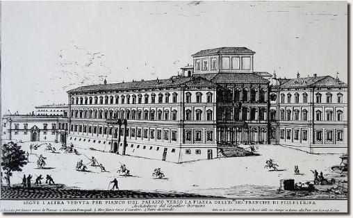Di Stefano Landi abbiamo già raccontato le vicissitudini che lo portarono a divenire prima protégé dei Borghese e successivamente della potente famiglia del nuovo Papa. Sopranista al Collegio Germanico a Roma nel 1595, organista e cantore in seguito in diverse chiese romane, scrisse un primo libro di Mottetti nel 1616, nel 1619 La Morte d'Orfeo e nel 1628 una Messa nuziale per i Barberini, entrando così nel loro entourage. Infine i Barberini senza i quali nulla si sarebbe fatto. Eletto papa nel 1623 Maffeo Barberini, fine letterario e poeta, autore dei Poemata, musicati da Domenico Mazzocchi, portò subito alla ribalta i tre nipoti, Taddeo destinato ad amplificare e a perpetuare la gloria della famiglia sposando la principessa Anna, rampolla della nobile ed antica famiglia dei Colonna ed acquisendo il Principato di Palestrina, Francesco ed Antonio entrambi cardinali, brillanti e colti principi della Chiesa e straordinari mecenati. A Francesco, il maggiore, spettarono i privilegi del ruolo di Cardinal nepote, vero alter ego del papa, sovraintendente dello Stato e sorta di primo ministro e quindi strumento diretto dell'assolutismo papale. E' soprattutto a lui che dobbiamo l'attività di impresariato teatrale che portò alla rappresentazione del Sant'Alessio, ma anche il fratello Antonio come Francesco attento conoscitore del panorama musicale romano, Virgilio Mazzocchi era il loro maestro di Cappella, fu attivamente coinvolto. Uno dei primi atti dei Barberini fu l'acquisto della proprietà degli Sforza alle Quattro Fontane, sotto i nuovi assi viarii delle strade Felice e Pia create da Sisto V e dove andavano a concentrarsi molti degli interventi urbanistici ed architettonici dei papi e dei cardinal nepoti del primo Seicento, gli Aldobrandini e i Ludovisi, i Borghese soprattutto, con il palazzo poi Rospigliosi e gli interventi al Palazzo di Monte Cavallo poi Quirinale, destinato a Reggia pontificia. Il palazzo nasce con una doppia funzione o ancor meglio natura, l'una rivolta verso la città, sede di rappresentanza della Famiglia, l'altra di villa suburbana, affacciata sulle delizie di un vastissimo e ricchissimo per le rare essenze orticole, giardino. Vi operarono Carlo Maderno, il giovane Borromini, Gian Lorenzo Bernini, autore di gran parte del progetto architettonico e Pietro da Cortona, che dipinse nel soffitto dell'enorme salone alto due piani (ben 400 mq), il Trionfo della Divina Provvidenza, celebrazione sontuosa e magniloquente delle Virtù del Papa. Pietro da Cortona è anche il probabile progettista del Teatro che fu eretto entro il 1632, a coronamento e conclusione del grandissimo Cortile della Cavallerizza, entrata grandiosa al Palazzo dalla parte di via Grimana (ora Piazza Barberini).