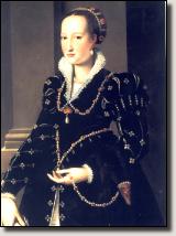 L'unione con Cosimo de Medici, doveva essere lunga e felice, allietata da una numerosa prole, che doveva garantire il proseguimento della dinastia, anche se numerosi lutti la funestarono negli ultimi anni. La Duchessa stessa doveva precocemente morire nel 1562, probabilmente di tubercolosi, ma minata dalla sofferenza di vedersi privata degli amatissimi figli Giovanni e Garzia. La sua ricchissima dote poteva garantirle un uguale sfoggio di lusso che fin dalle sue prime apparizioni al fianco del novello sposo si manifestò in tutta la sua pienezza. Il suo arrivo a Livorno fu particolarmente eclatante vestita di raso nero "tutta piena di gran punti d'oro, così in testa et col colletto" e già in quell'occasione Eleonora manifestava una eleganza altera che la poneva molto lontano dal gusto italiano e soprattutto fiorentino di quegli anni, dei quali il miglior esempio è dato dal ritratto di Lucrezia Panciatichi del Bronzino del 1540 . Qui si proiettava un'immagine femminile, che pur risentendo di una nuova austerità nei costumi con una maggiore negazione del busto e il suo appiattimento tramite insaldature o cartoni, ancora riusciva a restituire, grazie alle maniche della veste rigonfie e roccettate e alla morbida acconciatura ornata dal mazzocchio, quella naturale Grazia che tanto aveva caratterizzato i primi trenta anni del '500 italiano. Eleonora da subito fa mostra di recepire quella moda ma di reinterpretarla alla luce del nuovo gusto europeo segnatamente spagnolo che le fa preferire una silhouette più sottile, meno esasperata nei volumi, con una netta predilezione per sottane accompagnate spesso da ricche sopravvesti come le zimarre. Queste ultime erano la versione femminile dei roboni maschili, aperte e sciolte ad accompagnare la sempre maggiore rigidità degli abiti sottostanti. Il manifesto di questo stile che doveva alimentare l'immagine dinastica dei Duchi, e che poi fu largamente imitato, è sicuramente il ritratto di Eleonora con il figlio Giovanni, probabilmente del 1545, di Agnolo Bronzino, che diventerà il ritrattista ufficiale della Casata.  Agnolo Bronzino - Ritratto di Eleonora da Toledo con il figlio Giovanni Firenze Galleria degli Uffizi