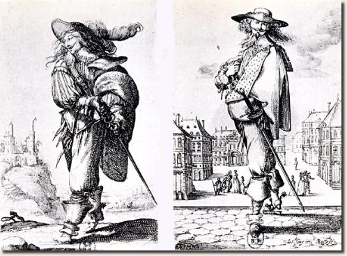 La moda maschile degli anni '20-30 del Seicento è forse la più bella di tutta l'età barocca. Mai come adesso l'uomo dà prova di una eleganza, di una grazia quasi effemminata e contemporanamente di una iattanza virile, di un equilibrio fra seduzione e nobiltà, fra ordine e disordine. Alcuni gentiluomini danno l'avvio a tutto un nuovo modo di porsi, di apparire: Mosieur de Cadenet, che darà il nome ad una nuova, stravagante acconciatura caratterizzata da una lunga ciocca di capelli sulla sinistra del volto, Mosieur de Balagny che insegnerà come portare con noncuranza il manteau sulla spalla sinistra, e tanti altri gentiluomini che creeranno quell'unicum di raffinetezza che sono gli anni di Luigi XIII.